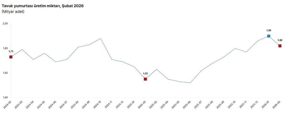Bununla birlikte, şubat ayında tavuk yumurtası üretimi geçen yılın aynı dönemine göre yüzde 17,6 artış gösterirken, kesilen tavuk sayısı yüzde 5,9, tavuk eti üretimi ise yüzde 4,4 oranında artış yaşadı. Ocak-şubat döneminde ise tavuk yumurtası üretiminde geçen yıla göre yüzde 16,3, kesilen tavuk sayısında yüzde 4,4 ve tavuk eti üretiminde yüzde 3,3’lük bir artış kaydedildi.